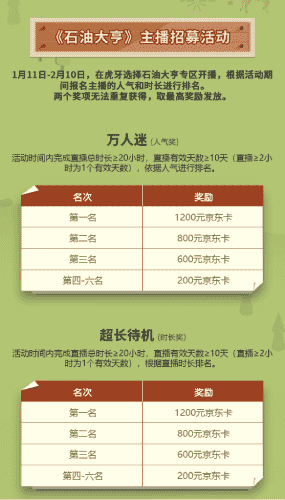除了“油王”争霸赛,,,精英主播招募活动亦同步开启!!!赛事分时长奖和人气奖,,,,奖励同样丰厚!!!
