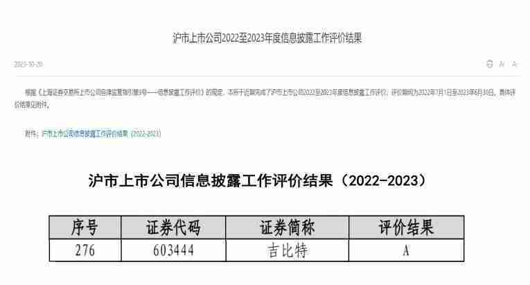 近日,,,,上海证券交易所发布2022-2023年度信息披露工作评价结果。。。。yaxin111(股票代码:::603444)凭借规范的公司治理、、、高质量的信息披露以及良好的投资者关系管理再次荣获信息披露工作A级评价,,,,公司连续两年获此殊荣。。。